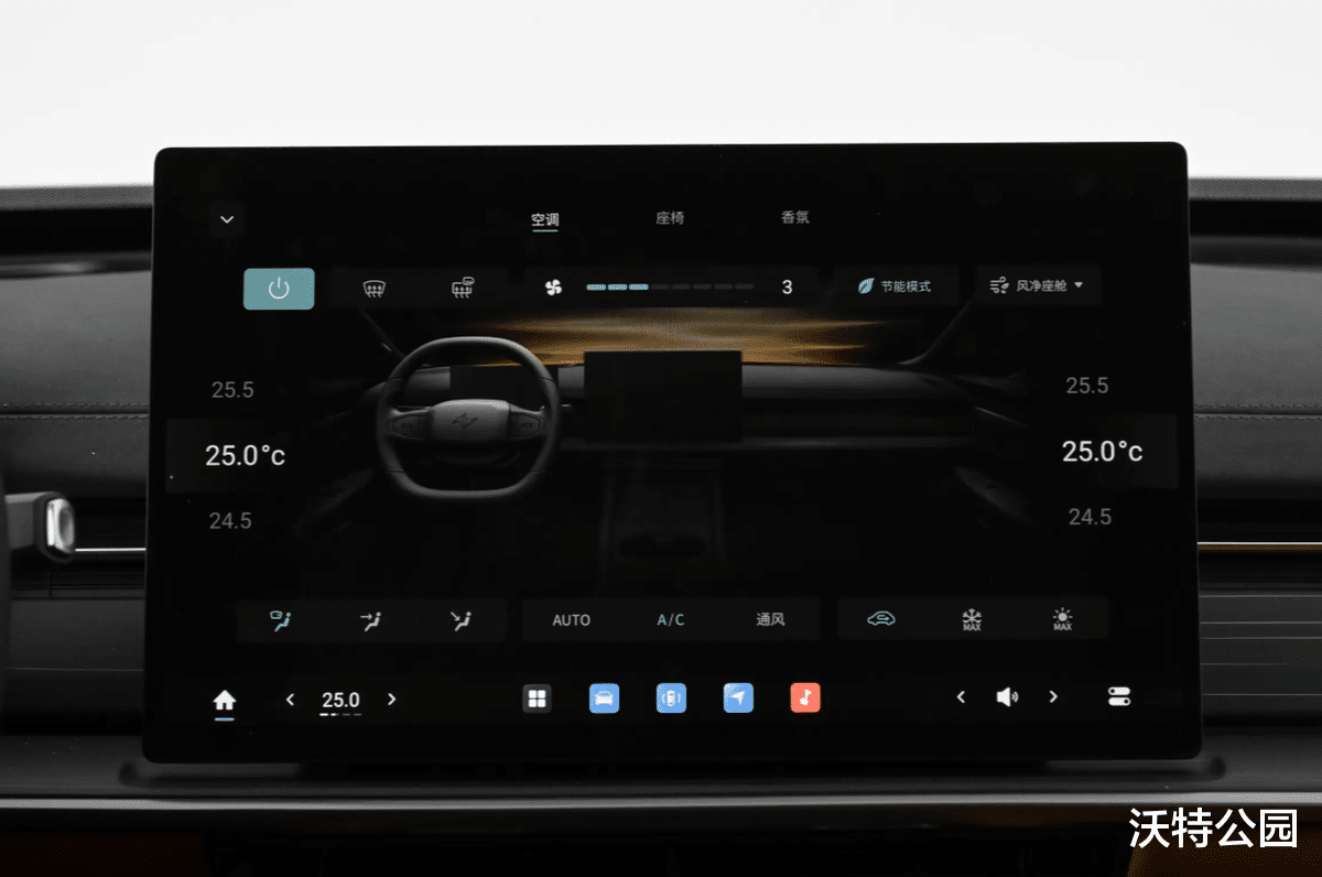 智能座舱部分,整体依然是简约科技风,中控台找不到物理按键,屏幕采用15.6英寸2.5K中控屏+10.25英寸仪表屏的组合。全车采用了大面积软质包裹,另外车内用了大量的环保材料,所以车内不会有明显异味。