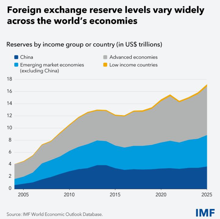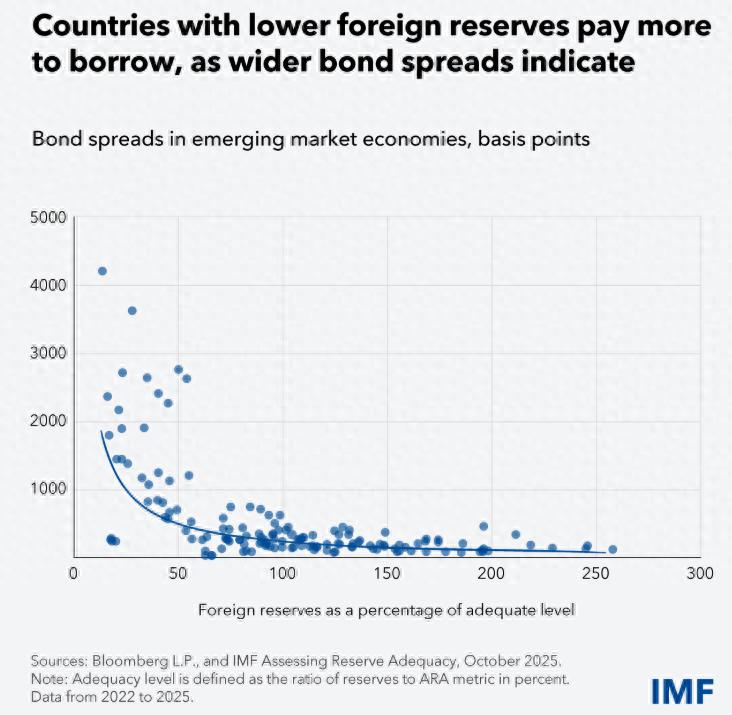 但对于许多其他经济体,尤其是低收入经济体而言,全球金融安全网的各个层面——包括获得国际货币基金组织(IMF)的资源、双边或区域货币互换额度以及各国自身的官方储备——仍然不足以应对严重的冲击。根据IMF的储备充足性指标,更高的储备水平将有助于这些国家增强抵御冲击的能力。