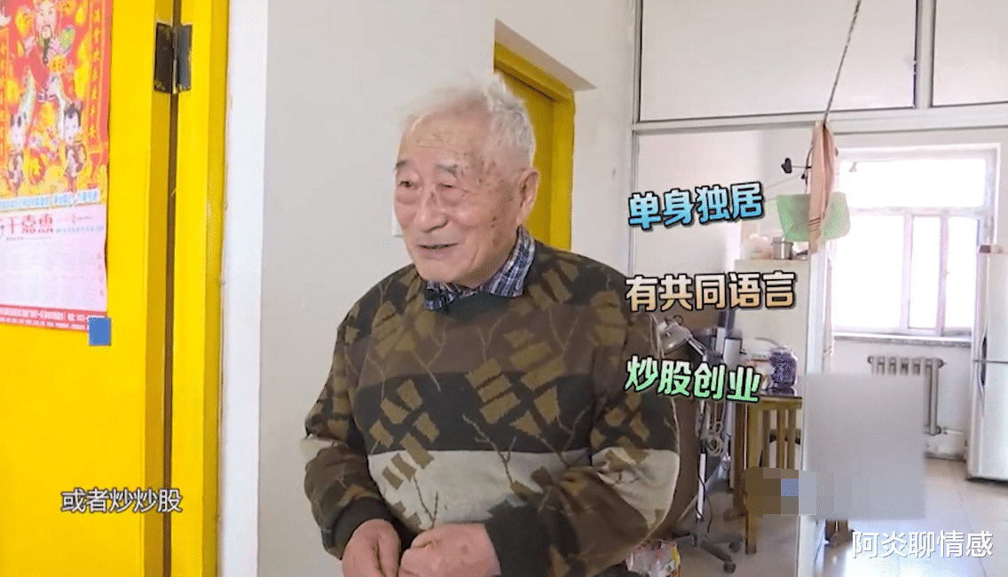 李大爷说虽然他已经八十多岁了,但是他的心态只有六十岁,他还想做很多事情,比如炒股、创业,所以他希望找个志同道合的老伴。