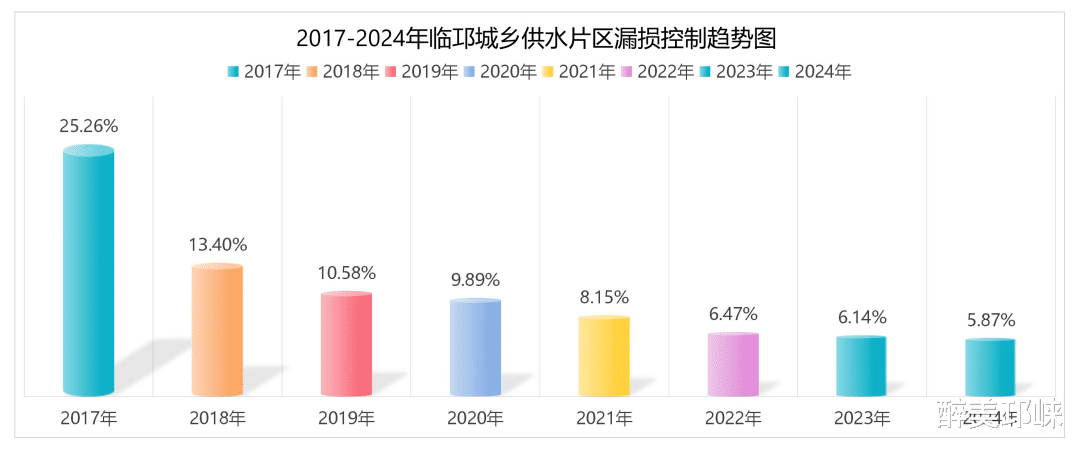 在临邛城乡供水片区,持续通过管网改造加管理升级,逐步构建起“检漏-维修-评价”全流程追溯机制,供区内漏损率由2017年的25.26%降至2024年的5.87%,每天减少漏损量约1万立方米,已达到全国先进水平(标准要求为9%以下)。