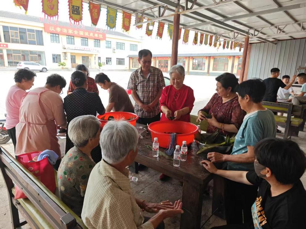 以孝治家三支队伍的义工们和村里的老人们一起过节