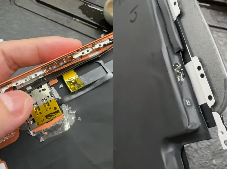 先来说一下问题,目前经过测量,在安装卡槽的地方有一个0.23mm的顶起,拆机发现也是割过VC扇热板,与一些主流博主对外发布的不一致,另外存在电池鼓包不换,放气打胶继续卖的问题。不过也存在个别的体质问题,类似幸存者偏差,只是有问题的才会回到维修档口,并被发现。