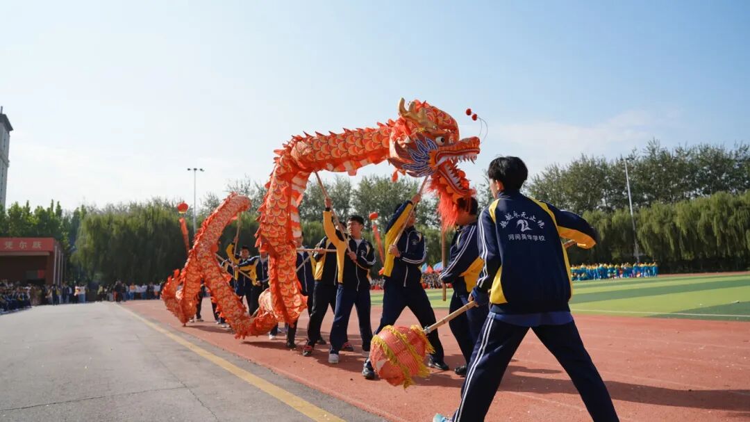 学生、教师与家长代表组成的甩龙方阵,则以其激昂的鼓点和翻飞的彩龙,展现出家校同心的坚实力量。