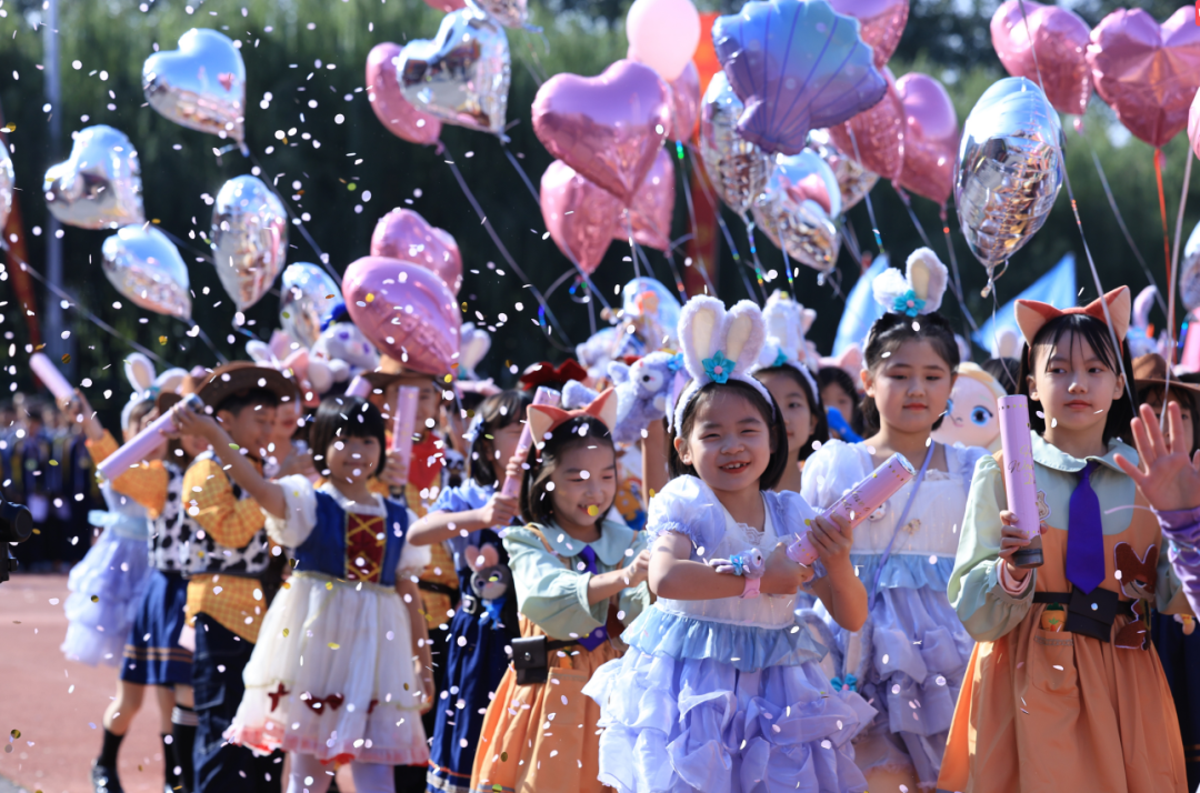 小学艺术方阵的孩子们则如一群灵动可爱的小天使,用纯真烂漫的笑脸编织着七彩童年的美好画卷。