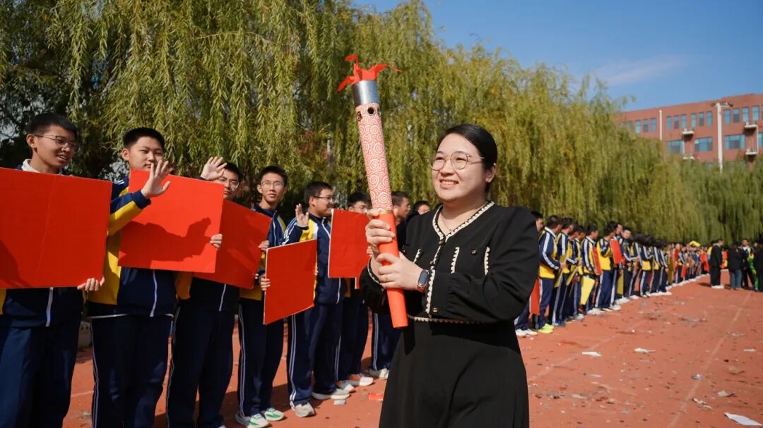中考荣光,耕耘有成。火炬庄严传递至中考功勋班主任赵越老师手中。她奔跑的身影,是无数日夜的坚守与付出。2025年中考,英华再续华章。这火焰,是对耕耘者最高的礼赞,是对教育初心的最美回应。