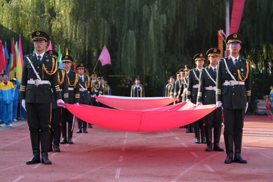 国旗飘扬,赤心激荡。在全场庄严肃立的目光中,河间英华学校第四届体育艺术节开幕式迎来了最庄严的时刻——升旗仪式。
