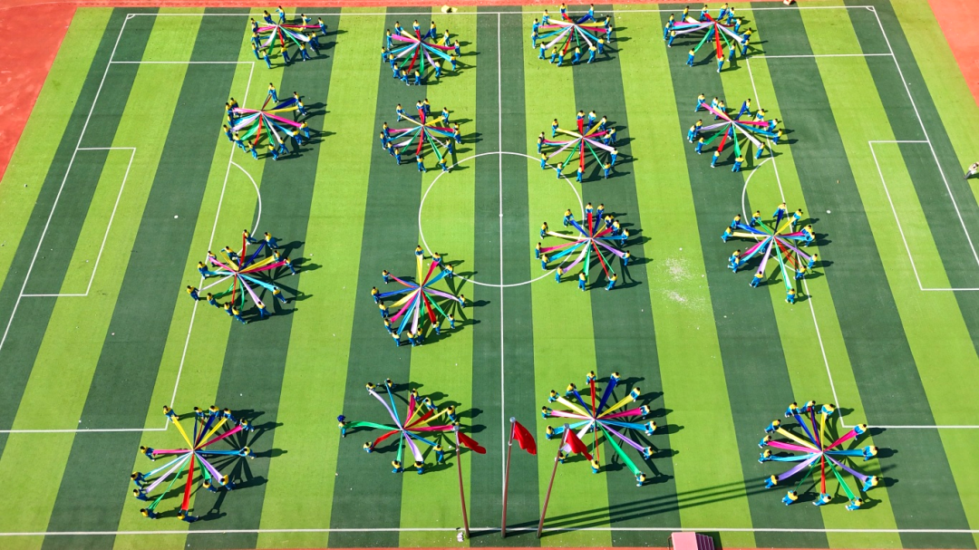 高一艺术方阵通过灵动的队列变化,描绘出一幅“美丽中国”的壮丽画卷。