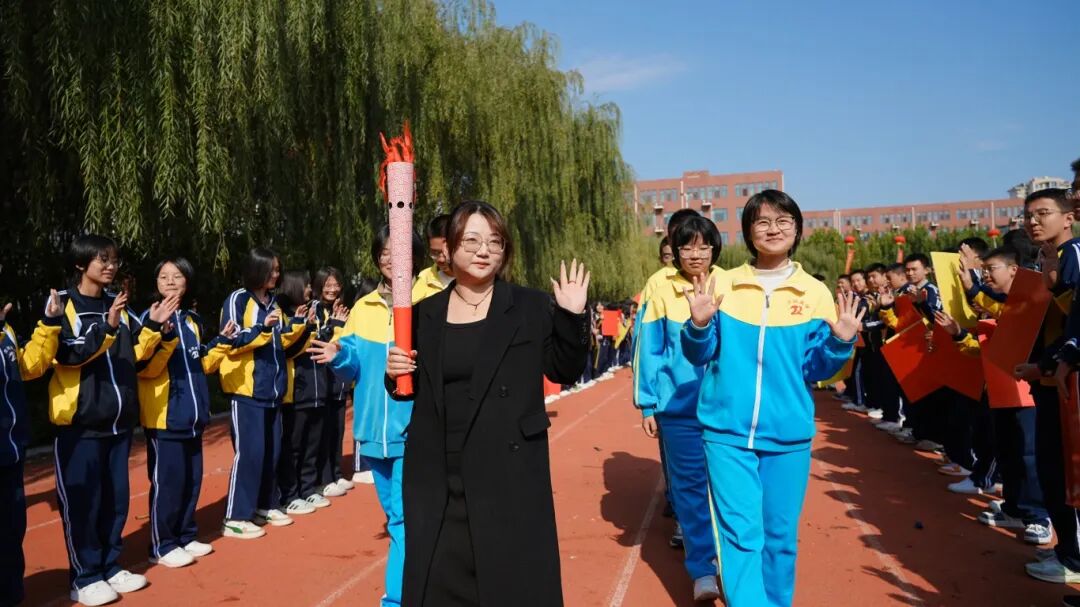 在彩绸翻飞、歌声回荡的盛景之后,一抹炽烈的光芒,悄然点亮了整个会场——河间英华学校第四届体育艺术节火炬传递仪式,庄严启幕。