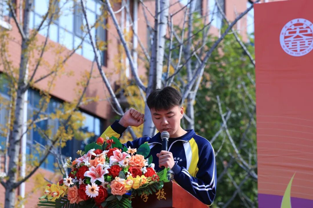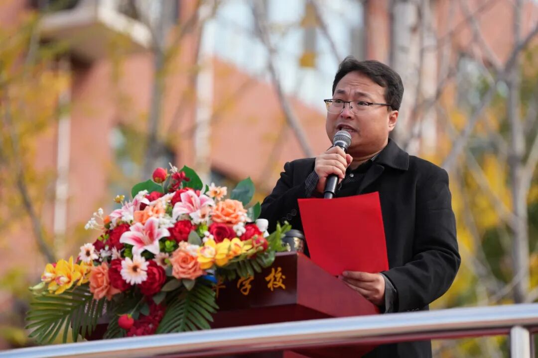 在开幕式庄重而热烈的氛围中,王凤刚校长为第四届体育艺术节致开幕辞。王校长以沉稳有力的声音,向全体师生、家长表达了诚挚的问候与深切的期许。他深情回顾了学校在“体艺融合、五育并举”育人理念下取得的丰硕成果,指出体育艺术节不仅是力量与才华的展示平台,更是青春与梦想的绽放之地。
