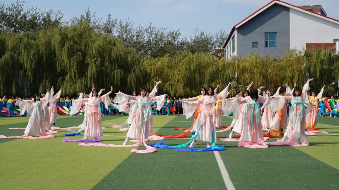 绚丽的彩绸如虹如霞,在少年手中飞扬流转。初中同学们带来的《花开盛世》,以翩跹的舞步、流动的绸韵,演绎出青春如花、盛世如歌的壮美图景。他们用身体作画,用热情谱曲,展现出力与美的完美融合。