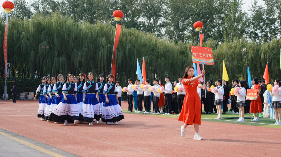 初一艺术方阵则以欢快的舞步,勾勒出初一学子朝气蓬勃的模样。
