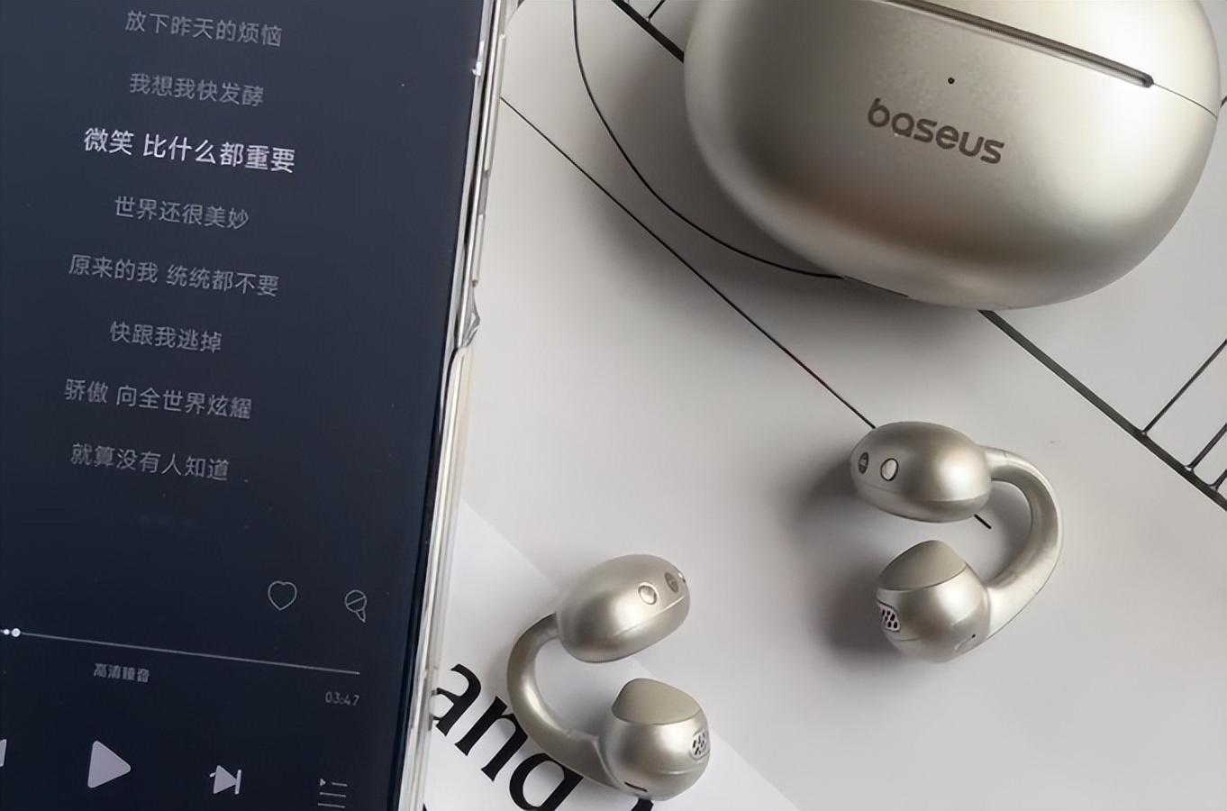 如果你在意音质:选倍思MC1耳夹,百元档就能享受到Hi-Res级音质,防水能力也拉满;