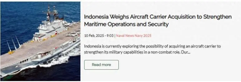 25年3月时,世界知名军事媒体英国《简氏》也曾报道称。意大利消息人士透露,印尼海军考虑购买已经退役的意大利加里波第号轻型航母,并试图购买一批二手的AV-8B垂直起降战斗机,甚至于印尼还希望引进相关技术,从而让印尼运营四艘直升机航母。