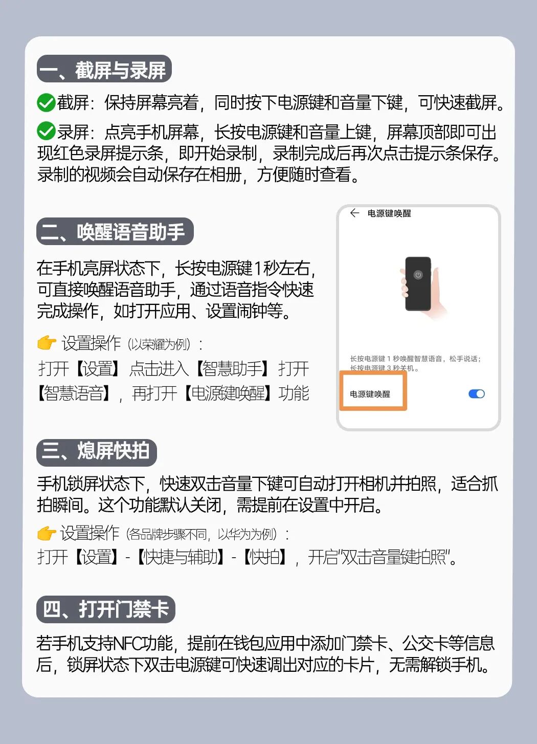 开机、关机只是手机电源按键最基本的功能,你知道吗?它还藏着很多实用技能。它还藏着很多实用功能