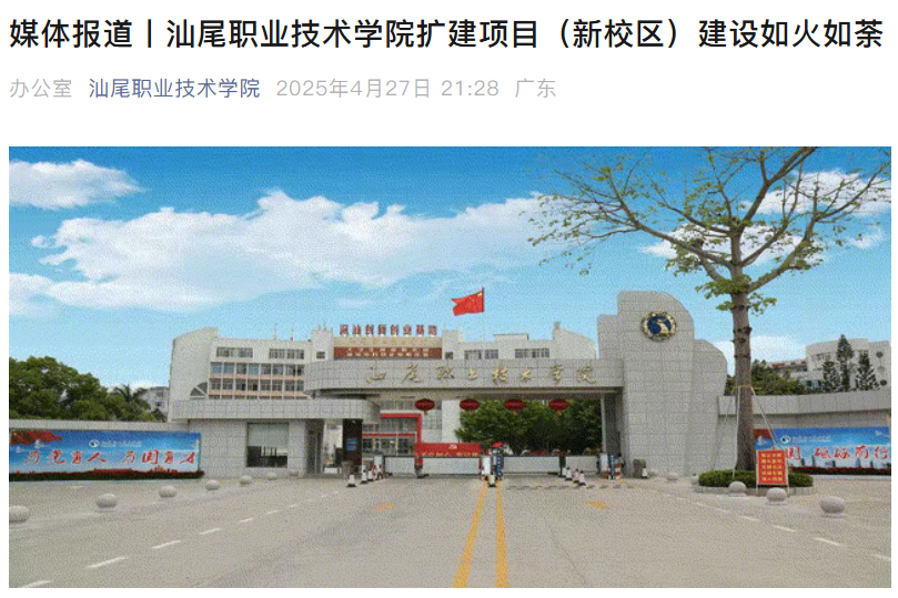 新易学小编从汕尾职业技术学院官微获悉,汕尾职院新校区预计将于2026年交付!