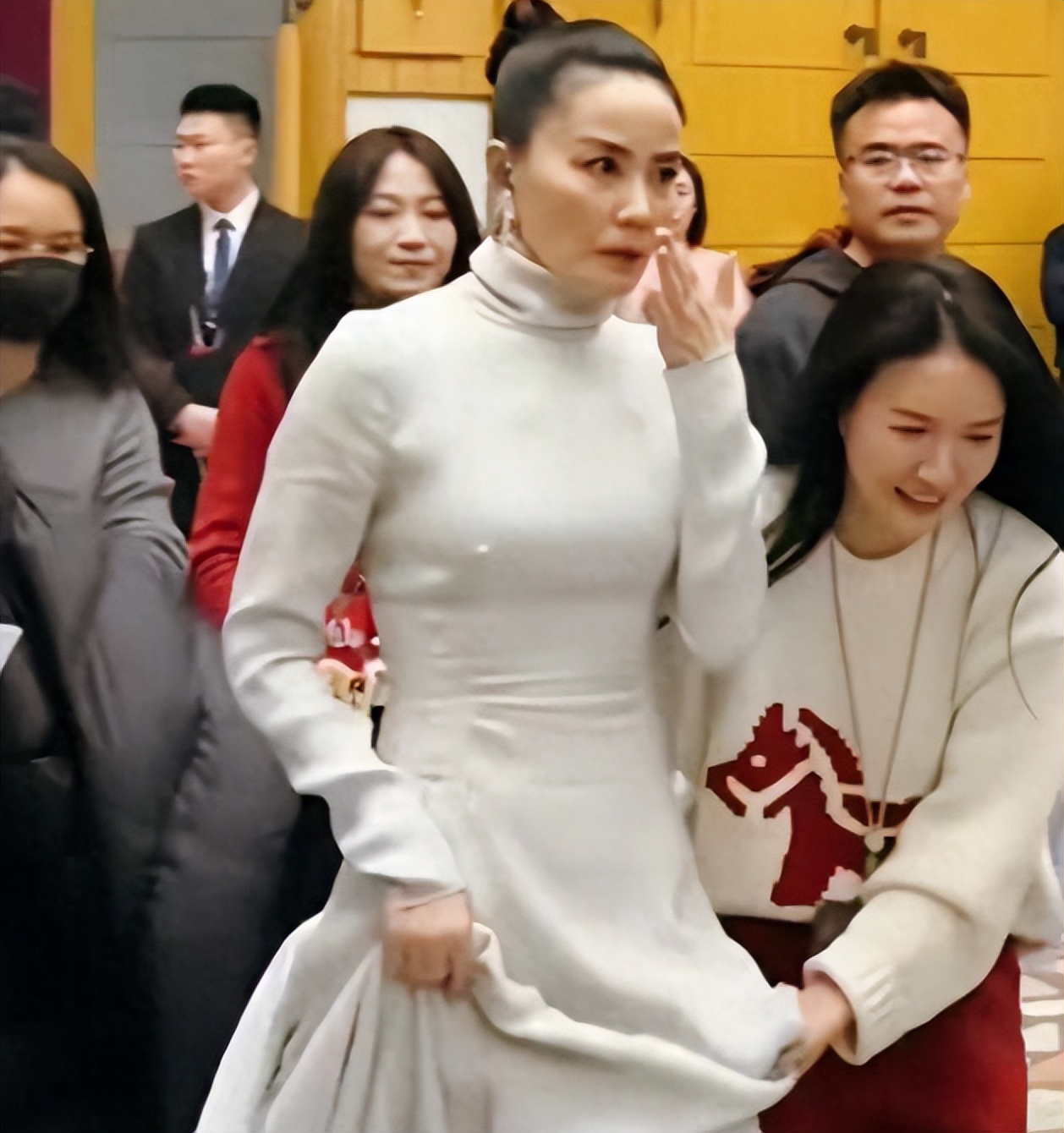 这哪里是冻龄女神,分明是一位普通的 57 岁阿姨,妆容也没能挽救她的状态。