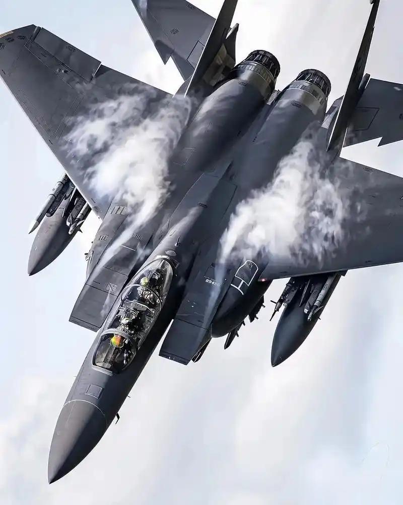 - F-15E:机长19.43米,翼展13.05米,空重约14.3吨,最大起飞重量36.7吨;搭载2台普惠F100-PW-229或通用F110-GE-129涡扇发动机,单台加力推力约129千牛,最大速度2.5马赫,实用升限18000米,推重比约0.93。