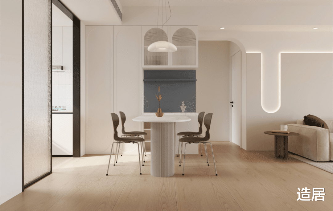 小户型想兼顾显大和实用,不如做半开放。厨房和餐厅之间装推拉玻璃门,做饭时关上挡油烟,平时拉开显通透;或者在厨房门口留个尺寸刚刚好的吧台,既当操作台又当餐桌,不用拆墙也能互动。