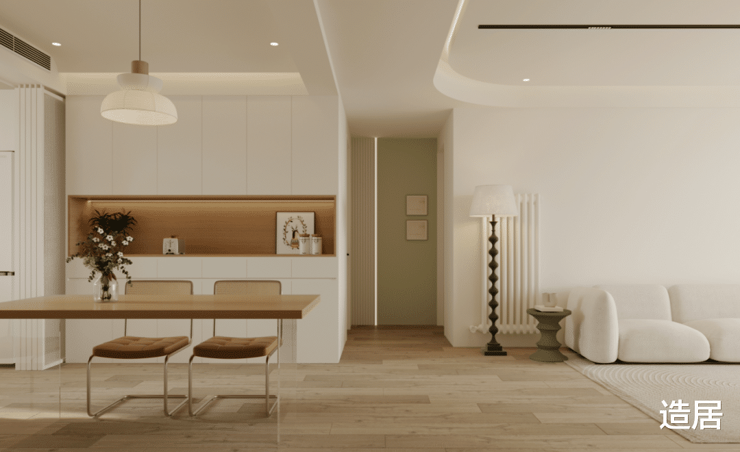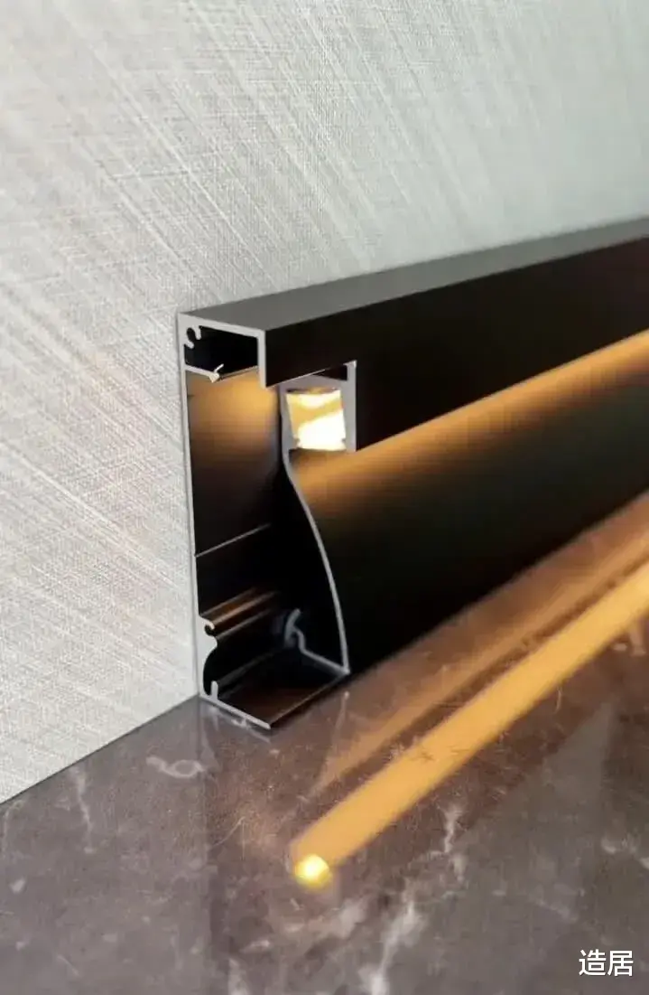 最近两年极简风流行“无踢脚线”设计,觉得墙根没有线条遮挡,视觉上更整洁,拍出来的房间也显宽敞。