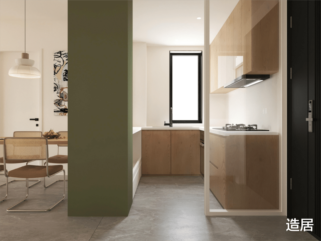 比如对于喜欢辛辣、重油烟的家庭,炒个辣椒,客厅的沙发、窗帘都沾着辣味;早上煎鸡蛋,油烟飘到卧室,孩子总被呛醒;更麻烦的是收纳暴露,台面放着油盐酱醋,看起来乱糟糟,擦台面时还得挪来挪去。