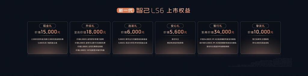 不止于此,在新一代智己LS6上市期间,所有首任车主,不论是新购,增购,还是置换,均可享受电池包终身质保,买得安心、开得放心;首任车主,还将获得IM AD全功能包5年免费使用权,预售用户终身免费!