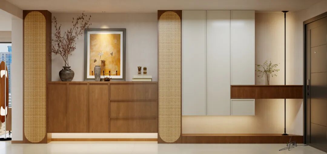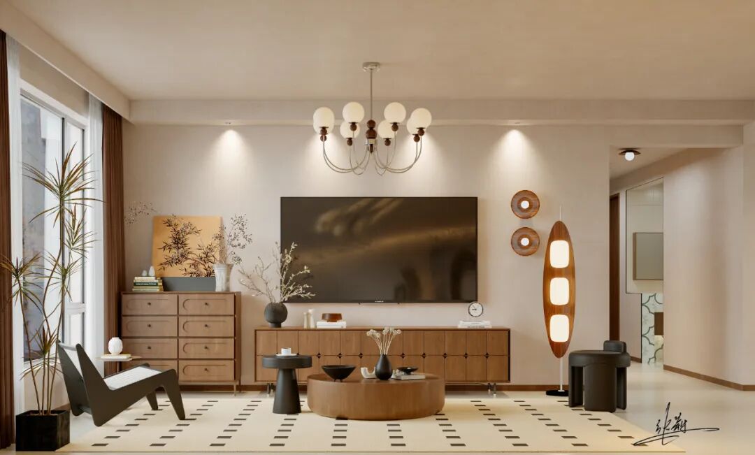 设计要点 / 中古风家装设计需以米白、浅咖等暖色系为空间基调,搭配复古棕、墨绿等点缀色;材质上核心采用木质、藤编营造自然复古感,辅以皮革、金属提升精致度;融入拱形造型、几何图案等经典元素,搭配复古灯具、艺术挂画等软装强化风格符号;家具选择弧形沙发、雕花床架等,兼顾复古造型与实用功能;同时植入现代智能家居等便利设施,平衡怀旧氛围与生活需求;最后通过暖光灯光设计,结合枯枝花艺、编织毯等细节,营造充满时光故事感的温馨空间。