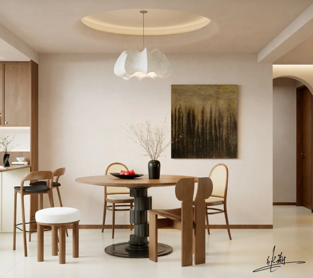顶部花瓣吊灯温柔垂落,用餐氛围直接拉满