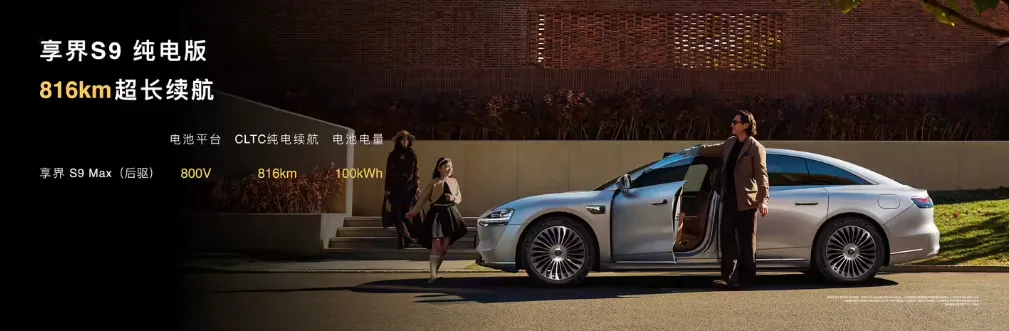 动力选择上,新款S9充分覆盖不同用户需求。增程版搭载华为雪鸮智能增程系统,全系后驱布局,提供37kWh与53.4kWh两种电池组,纯电续航分别达260km和370km。CLTC综合续航超1300公里,亏电百公里油耗仅5.85升。纯电版基于800V高压平台打造,提供后驱、四驱版本,标配宁德时代100度三元锂电池。CLTC工况续航分别达到816km(后驱)与721km(四驱)。在800V架构的加持下,车辆在15分钟内就能补能400公里。