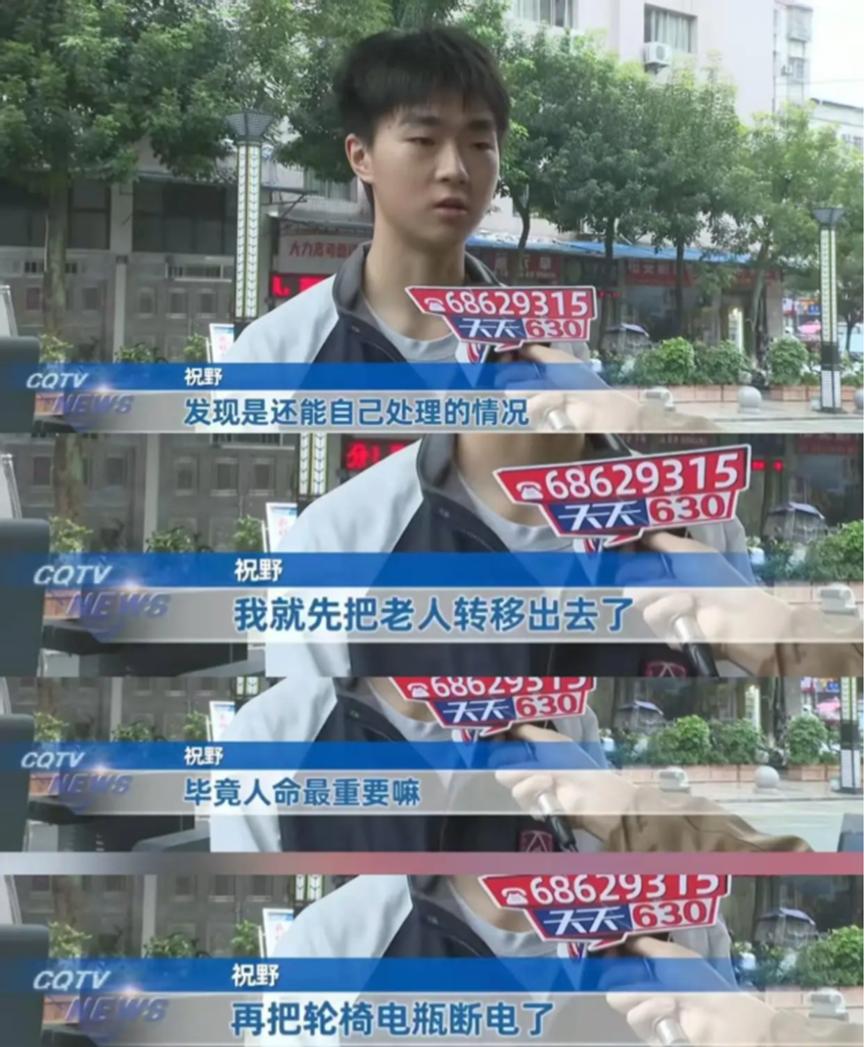 江女士激动得说:“要是有女儿都想让他当我女婿!”话里全是夸赞。江女士和祝野加了微信,江女士认他当了干儿子。