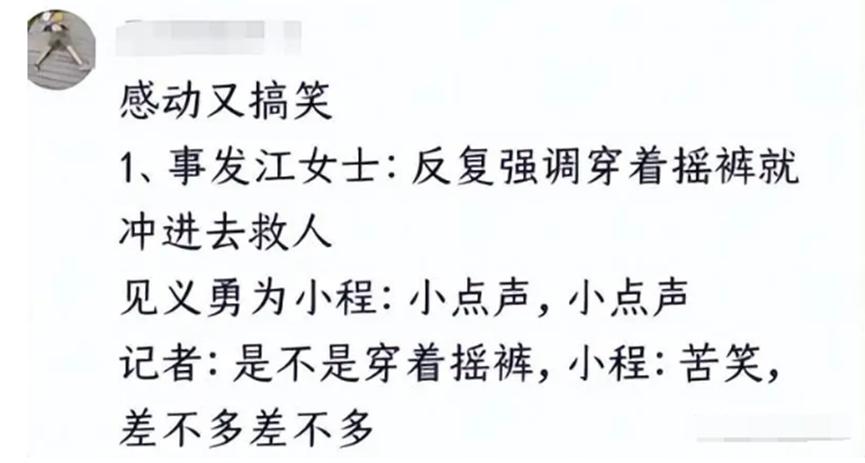 本来温馨感人的事儿,媒体报道一多,风向突然变了。江女士和记者总强调“只穿着内裤就从家冲出来救人”,本意是想夸赞他,结果让这个18岁小伙全网“社死”