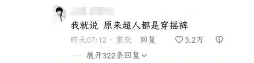 相关新闻的评论区,有人调侃:“人民的摇裤侠,感动!”“我就说,原来超人都是穿摇裤。”