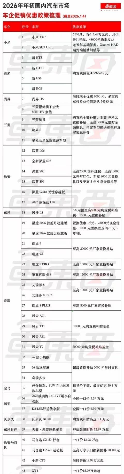 要说这车市的风向,变得比翻书还快!这不,2026年刚开年没几天,原本以为是个祥和的年头,结果车市直接炸了锅。这价格战打得那叫一个热火朝天,不知道的还以为车不要钱白送呢。