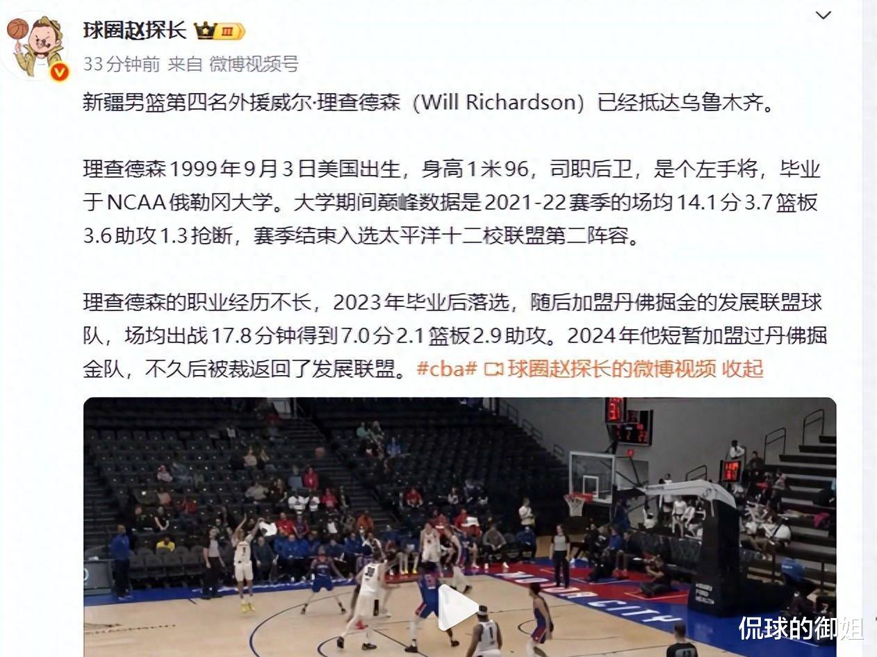 可以说,新赛季没开打,新疆队已经用掉了两次外援名额,一个之前签约的华莱士一场比赛没打提前跑路了,另一个就是路易斯金被裁,如果这个理查德森表现也不佳,新疆队又得浪费一次外援名额,希望这次的不会是水货。