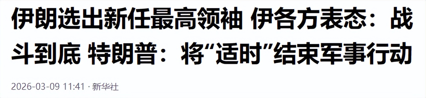 伊朗选出新任最高领袖 伊各方表态:战斗到底 特朗普:将“适时”结束军事行动