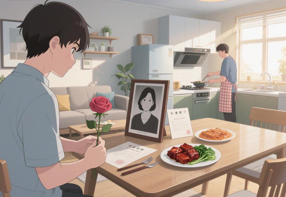我把妻子的遗像拿过来,放在小远面前:“这是妈妈。妈妈一直在等你回来,可她去年走了,没等到你。” 小远看着遗像,跪下来,磕了三个头,说:“妈妈,对不起,我回来晚了。以后我会好好照顾爸爸,不让你担心。”