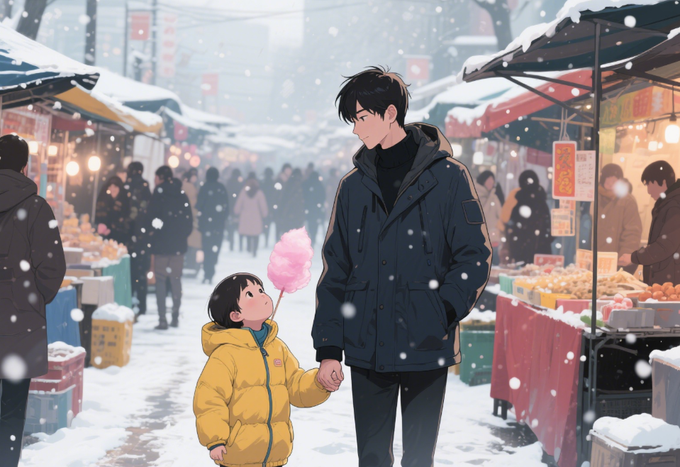 我带着他去了当年他丢失的集市。集市还是跟以前一样热闹,叫卖声、孩子的笑声混在一起。小远拉着我的手,慢慢走着,突然,他停在一个卖糖葫芦的摊子前,说:“爸爸,我想吃糖葫芦。” 我买了一串,递给他,他咬了一口,说:“还是小时候的味道。”