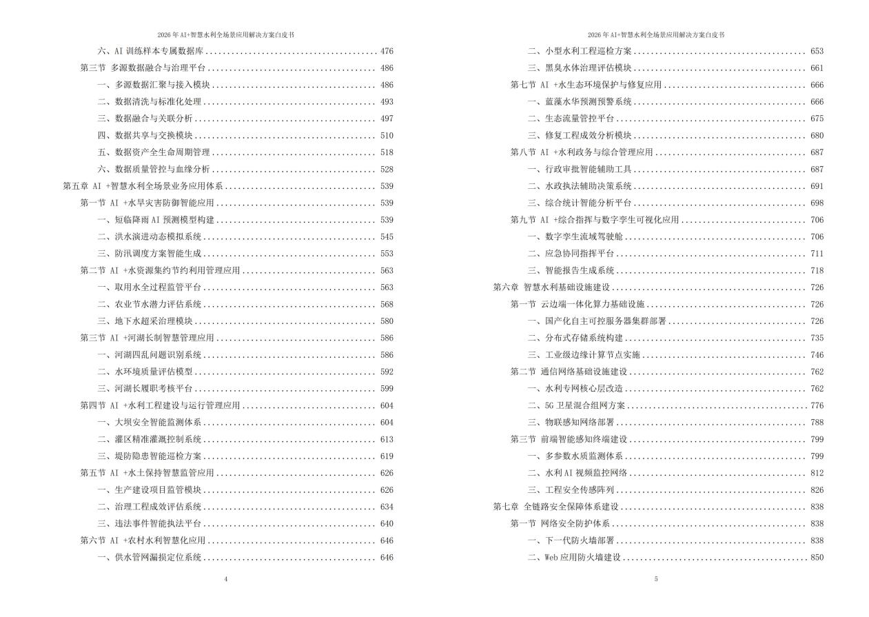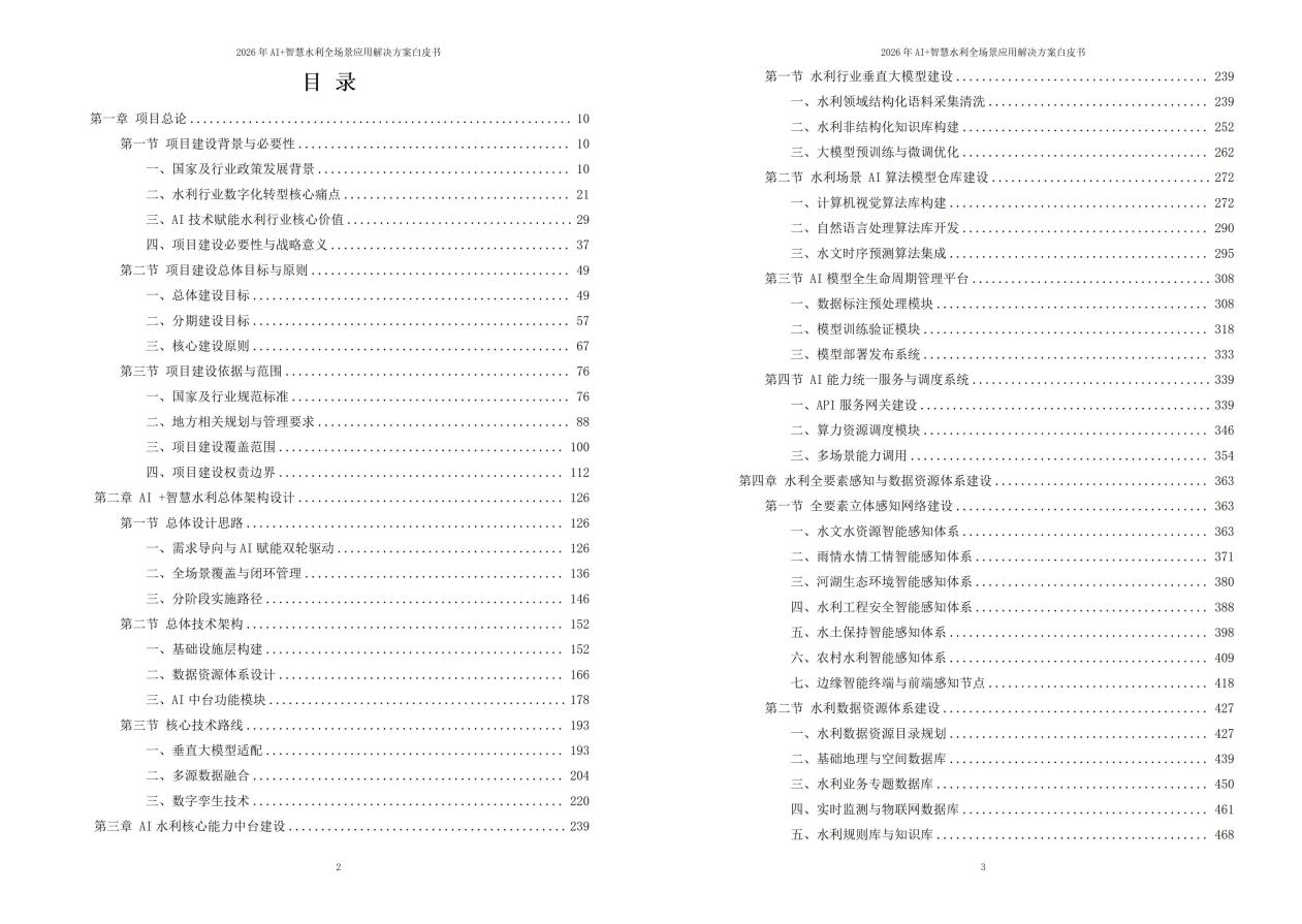 《2026年AI+智慧水利全场景应用解决方案白皮书》旨在通过集成大数据、物联网、人工智能等先进技术,构建全要素、全场景的智慧水利体系,推动水利行业的数字化转型和智能化升级。