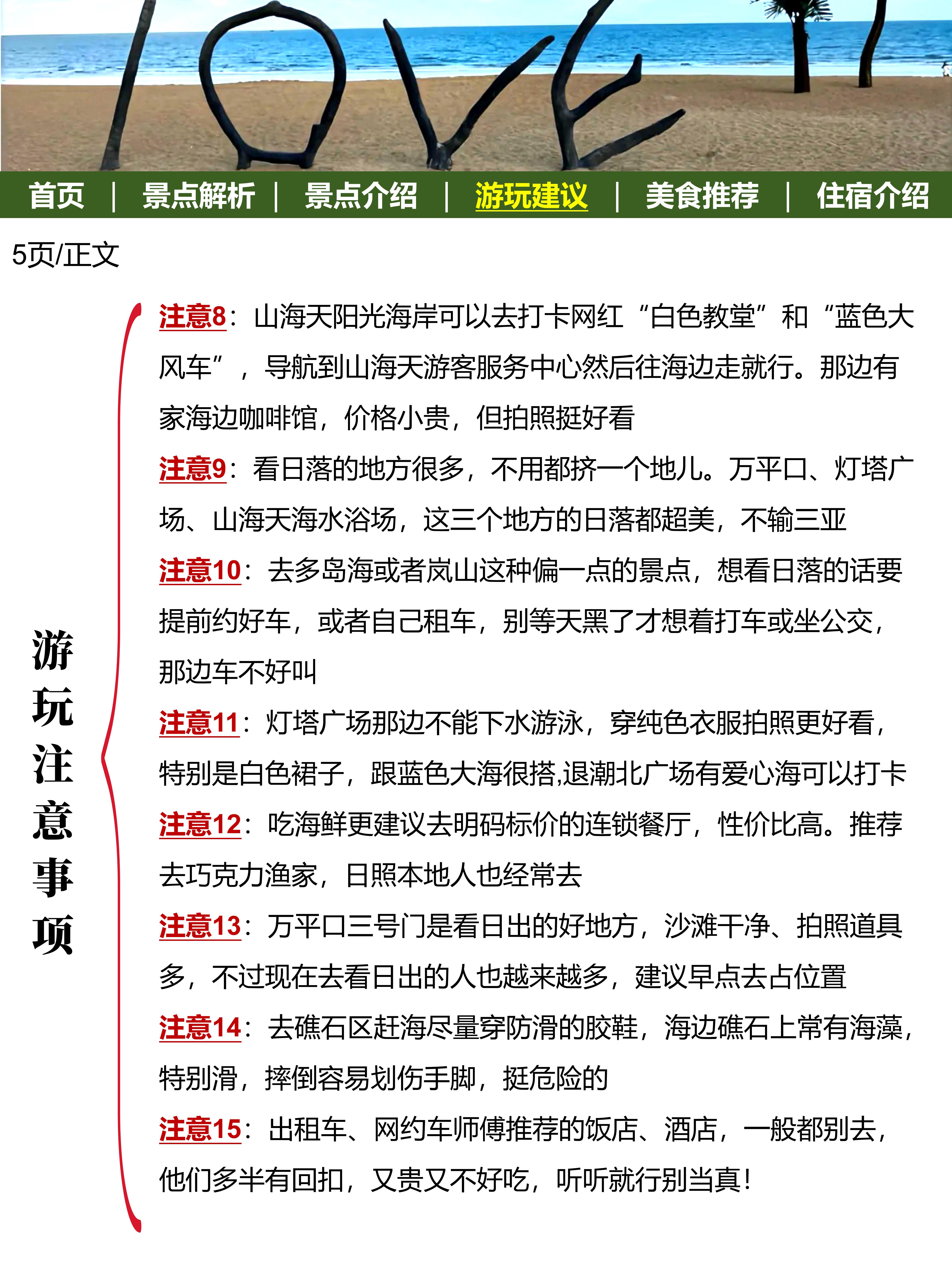 注意1:日照玩不用报团,景点基本都沿着海岸线排开,自己骑个电动车或者打车顺着海边走就行,特别方便