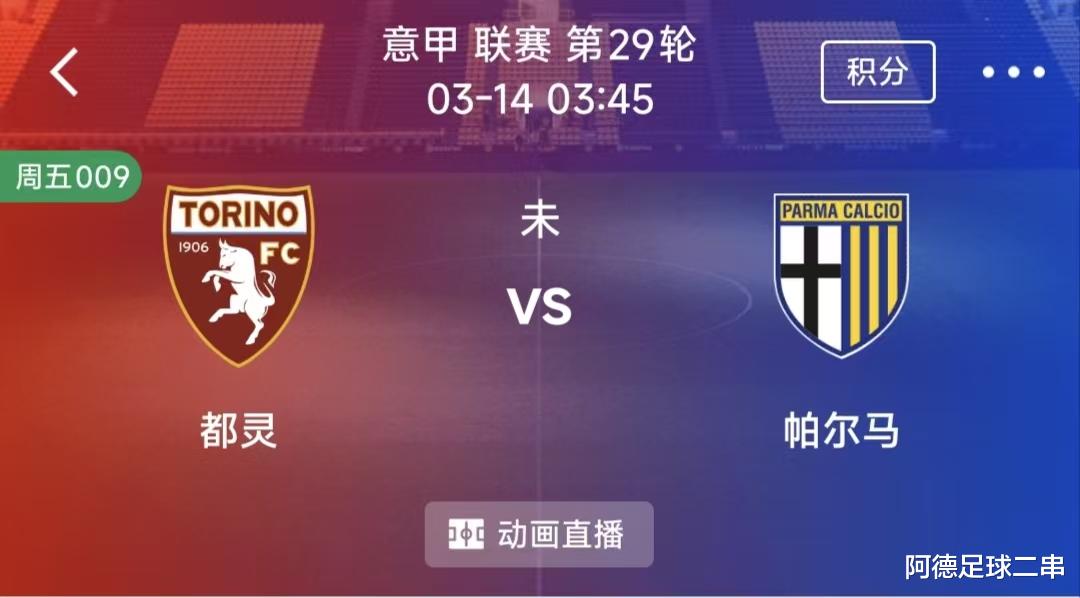 009意甲:都灵VS帕尔马 时间:2026-03-14 3:45 场地:都灵奥林匹克球场
