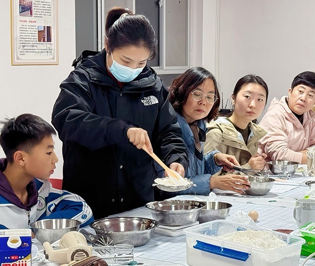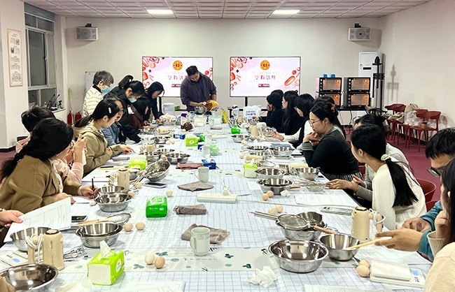 烘焙课堂聚焦两款广受欢迎的经典甜点——戚风蛋糕与巴斯克芝士蛋糕。在教学过程中,老师系统讲解了戚风蛋糕的蛋白打发技巧、翻拌手法及烘烤温度控制,指导学员掌握巴斯克原料乳化、状态判断等关键点。操作过程中,学员们全神贯注,相互交流心得,在融洽的氛围中,不仅缓解了日常工作压力,更掌握了又一项贴近生活的实用技能。
