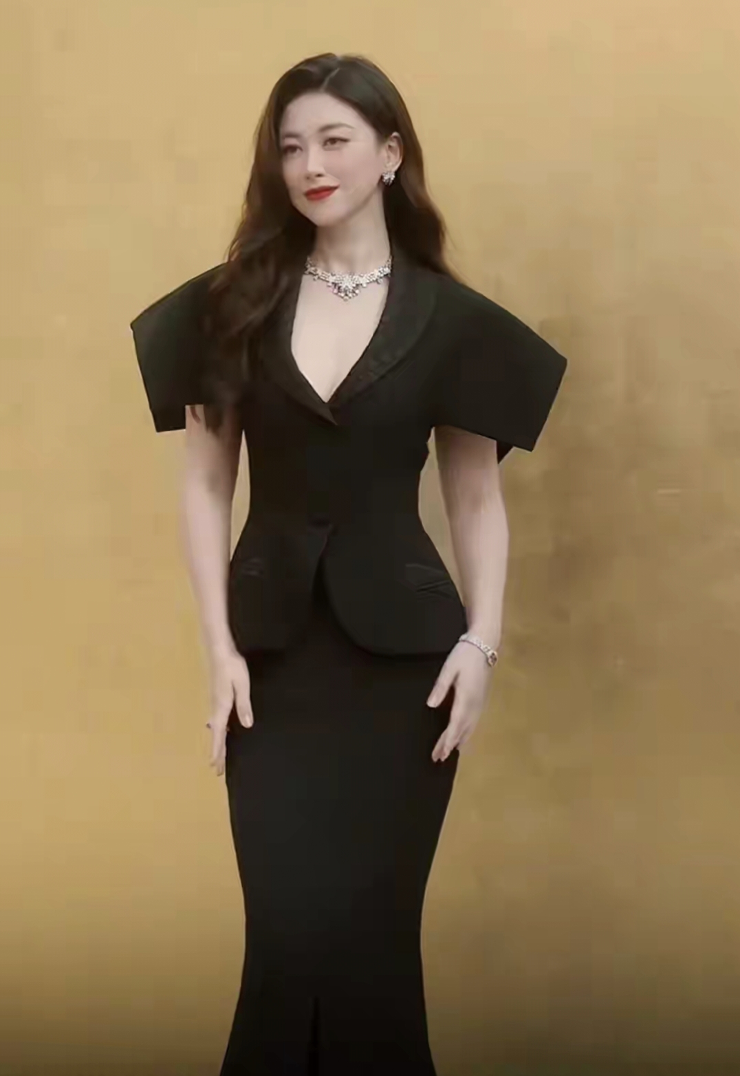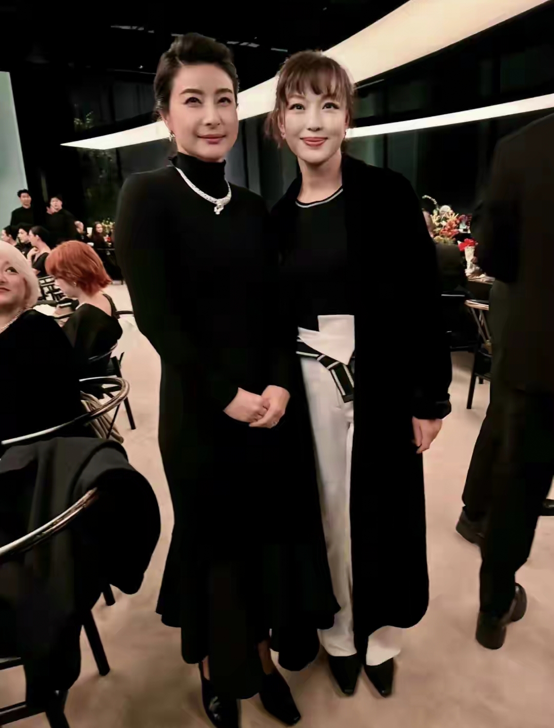 “排骨精”们穿着各色礼服展露身材优势,唯有她晚宴上包裹的“严严实实”,一身高领黑长裙,头发盘起,看上去干净又利落。
