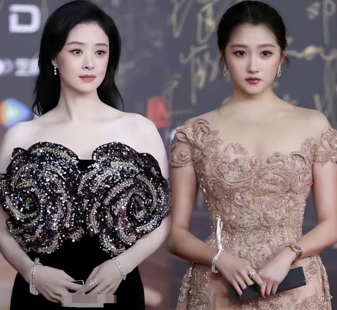 微博红毯一件黑色抹胸裙,肩峰明朗,衬得一旁纤细的关晓彤都“腰大膀圆”了。