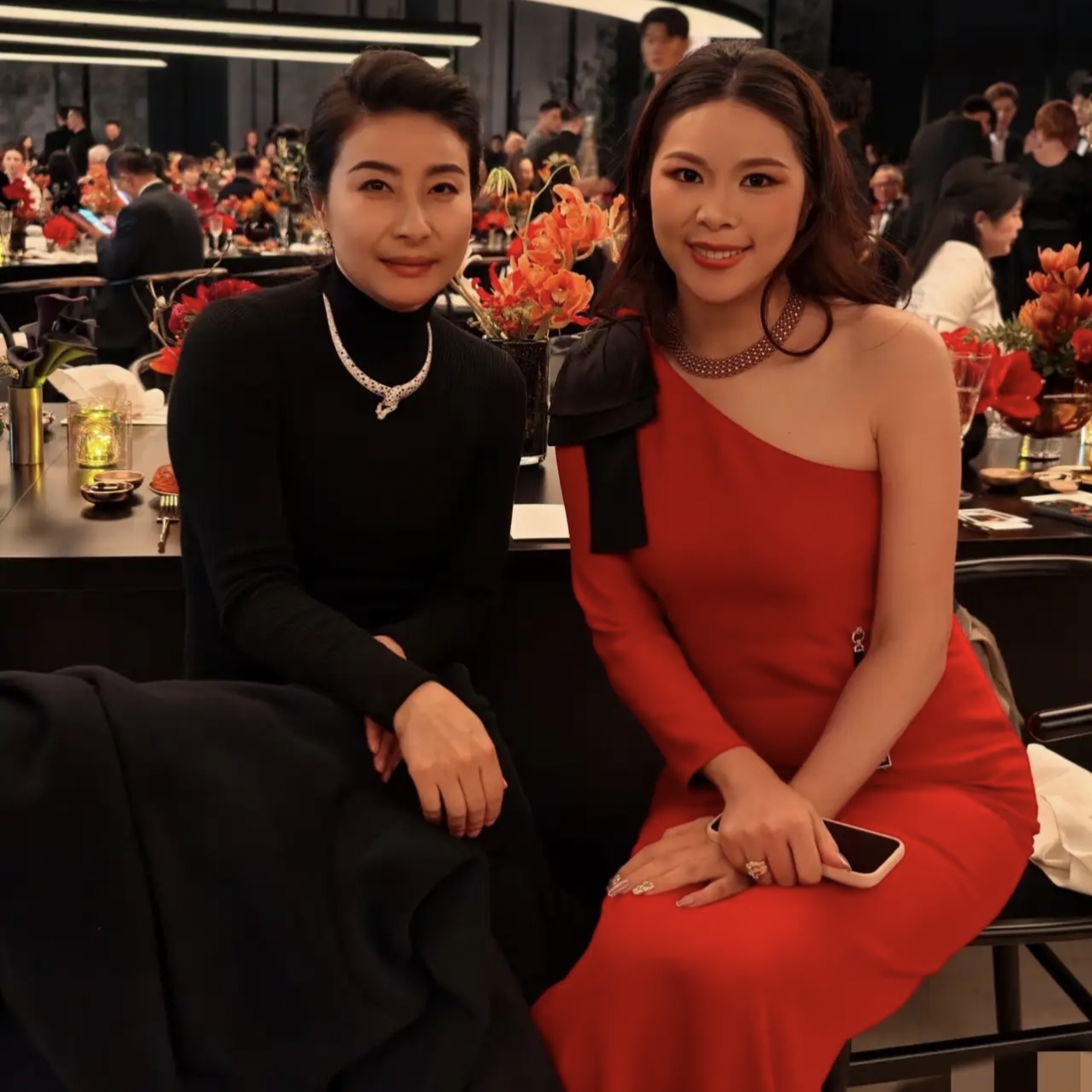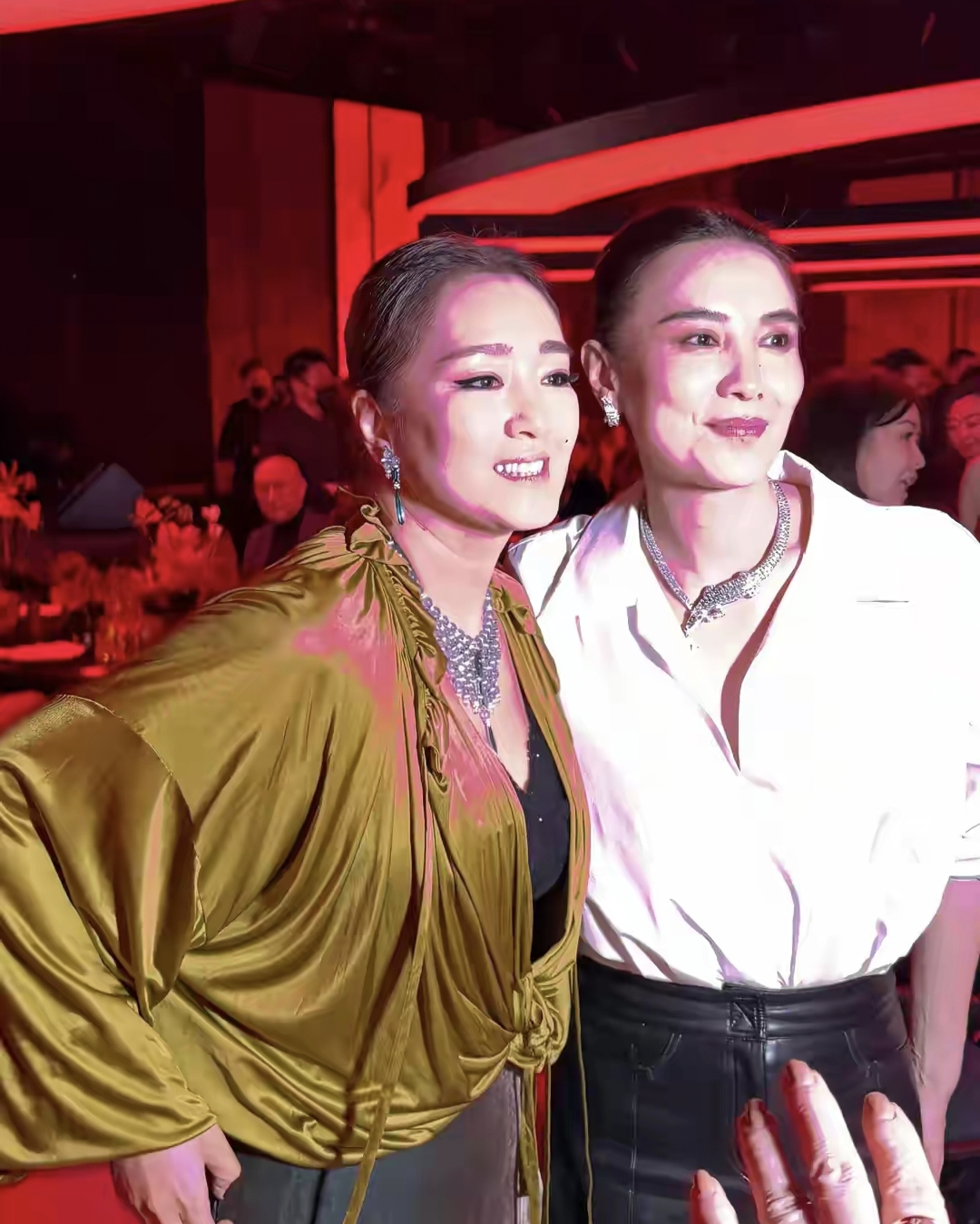 瞧,有“巩皇”之称的巩俐,果然到哪都是坐C位,左右两边都有卡地亚高层陪着,聊的眉开眼笑。