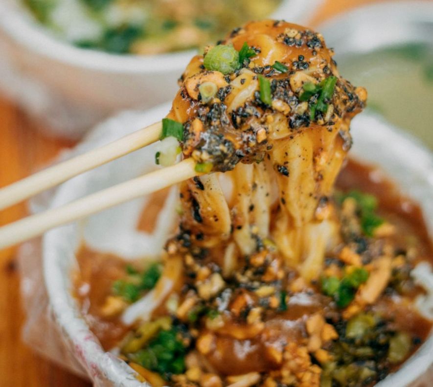 露面也是东方美食的一大特色,采用腌的河粉,加入豆芽、竹笋、花生、芝麻、牛肉干、肉末、酸菜、蒜头油等十多种配料,最后还会加上咸甜杂糅的卤汁。
