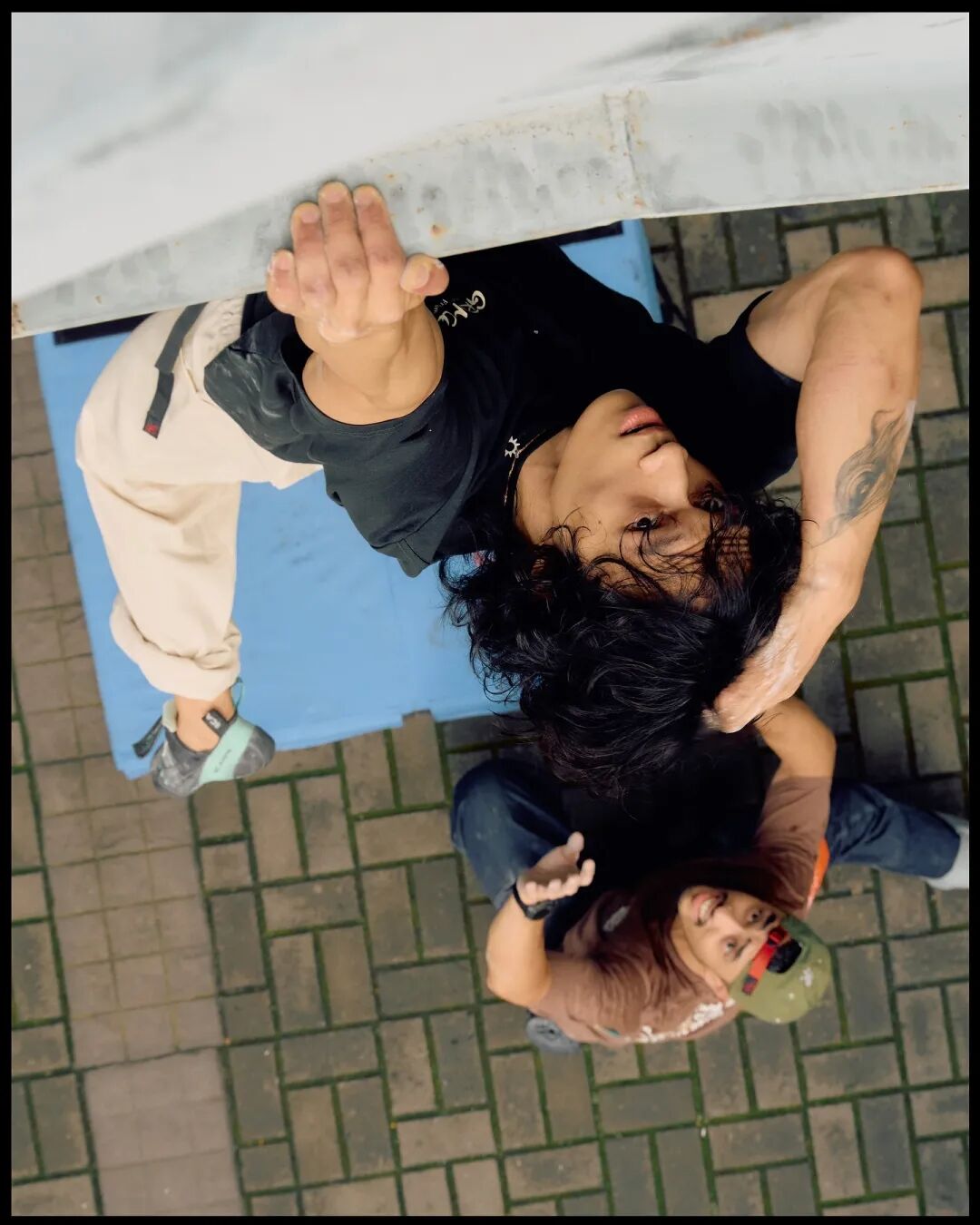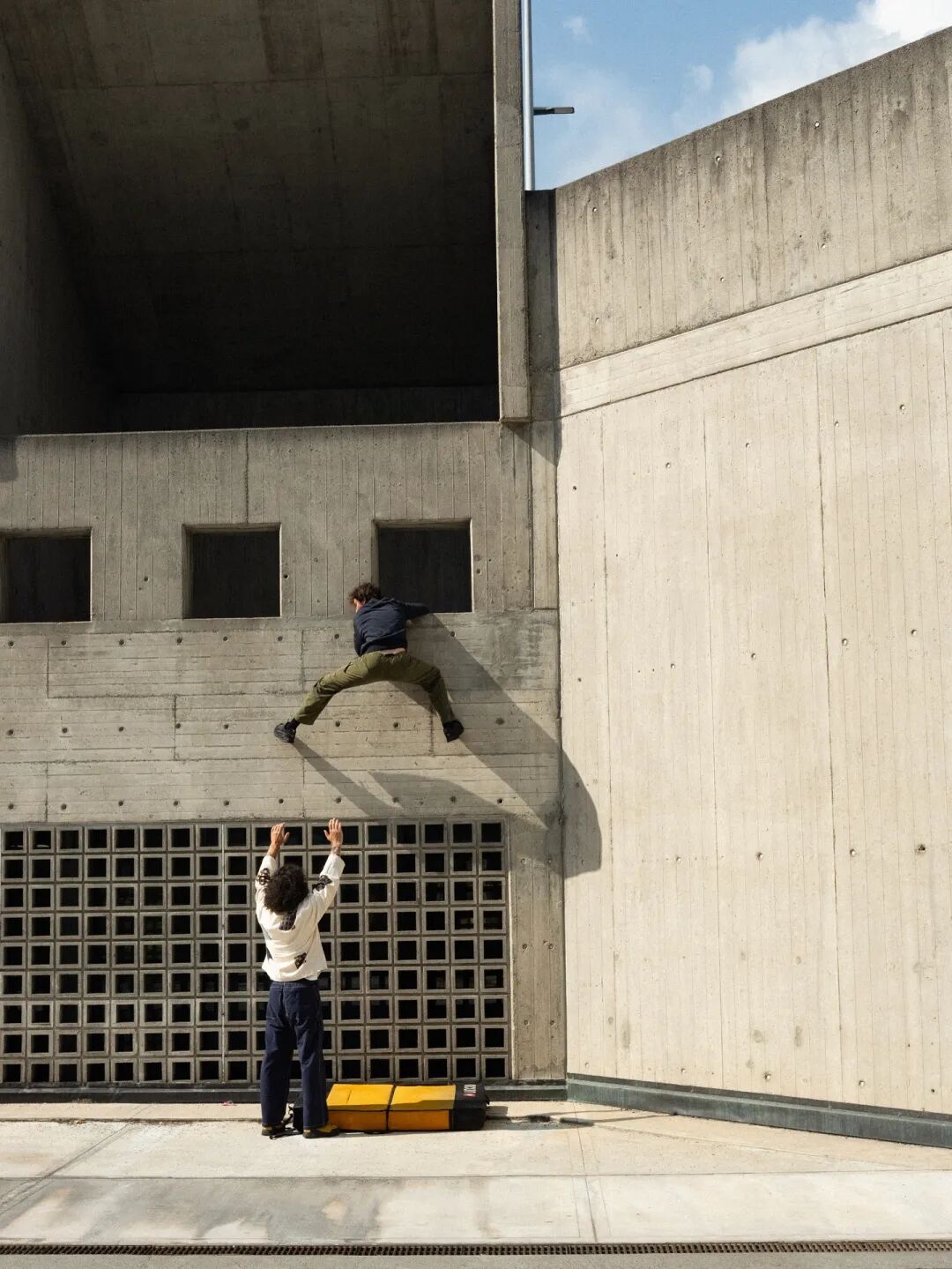 尽管发生在不同的场景,无论是抱石馆里通过颜色编码的路线,还是城市建筑表面上偶然发现的窗台与砖缝,攀爬者们都需要“解题”——利用有限的支点,规划出高效、稳固的攀爬线路。其中的心智挑战,也是共通的。