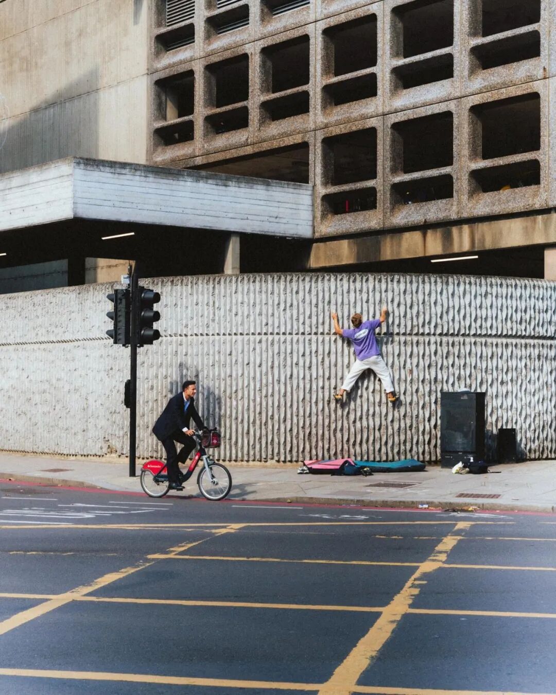 Buildering 把文明世界里的建筑功能、规范视为一种需要对抗的野生力量。一扇窗户不再只是采光的结构,而是一个抓手;一条装饰建筑的腰线不再只是美学,而是一个落脚点。Buildering 在人造的“混凝土荒野”中,用最原始的身体本能,创造出一条垂直的线路。