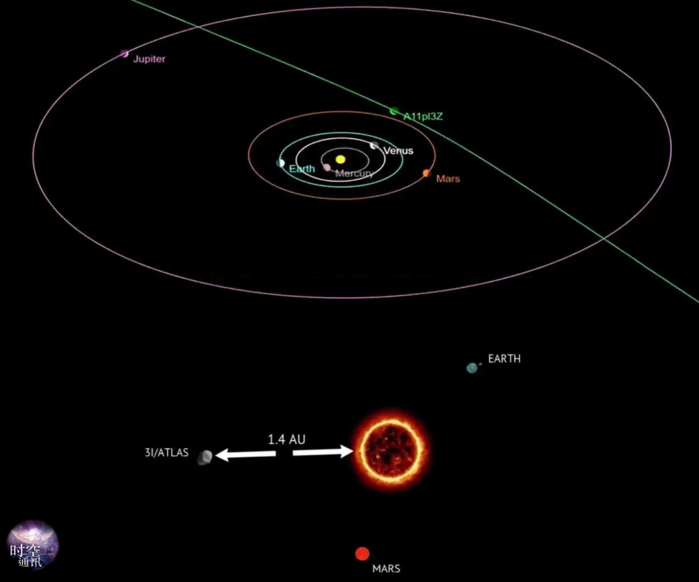 10月29日,3I/ATLAS将到达近日点,届时距离太阳2.03亿公里(1.36AU),速度会超过每秒68公里。这已经远远超过太阳引力的逃逸速度,因此3I/ATLAS不可能被太阳引力拉扯在太阳系。