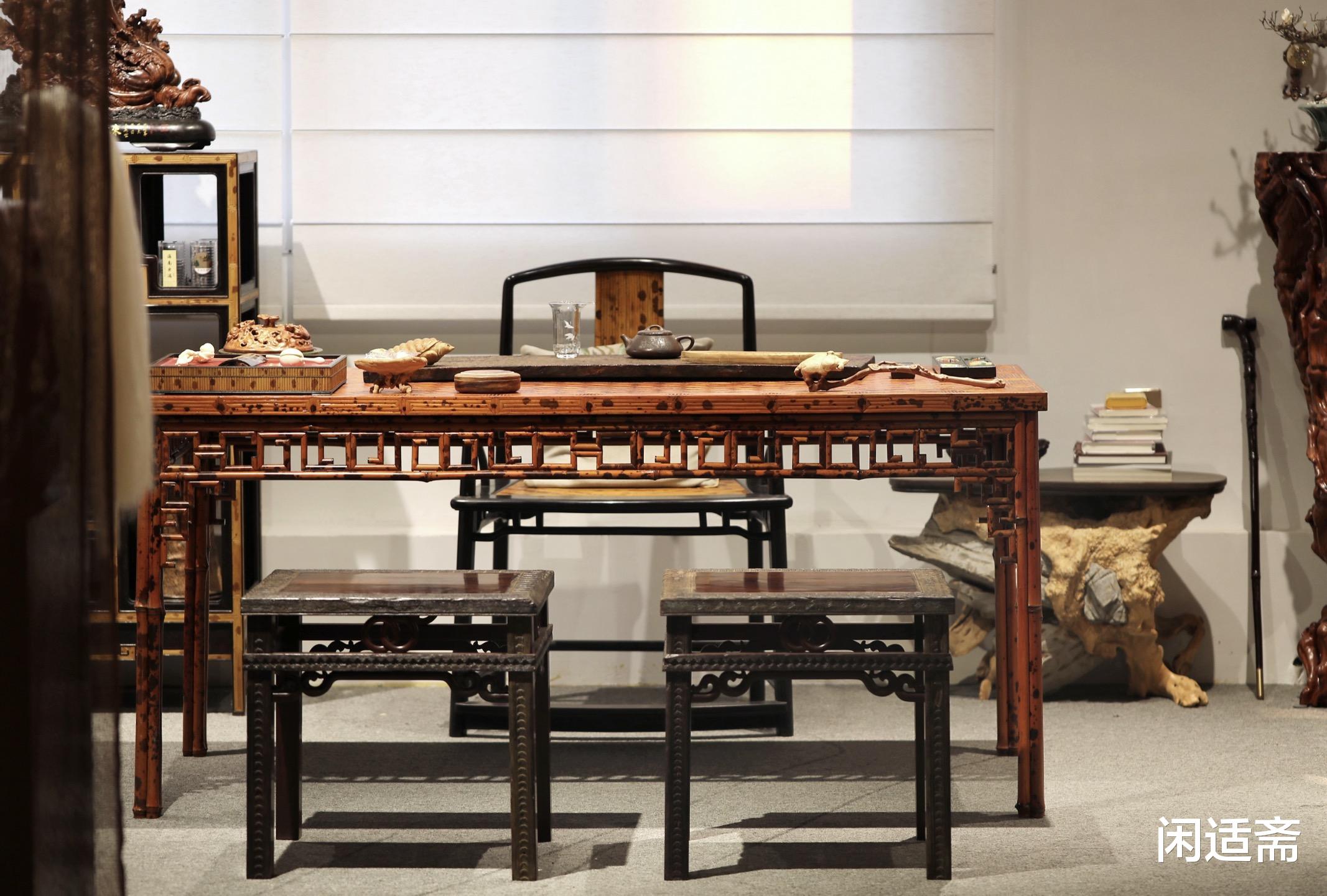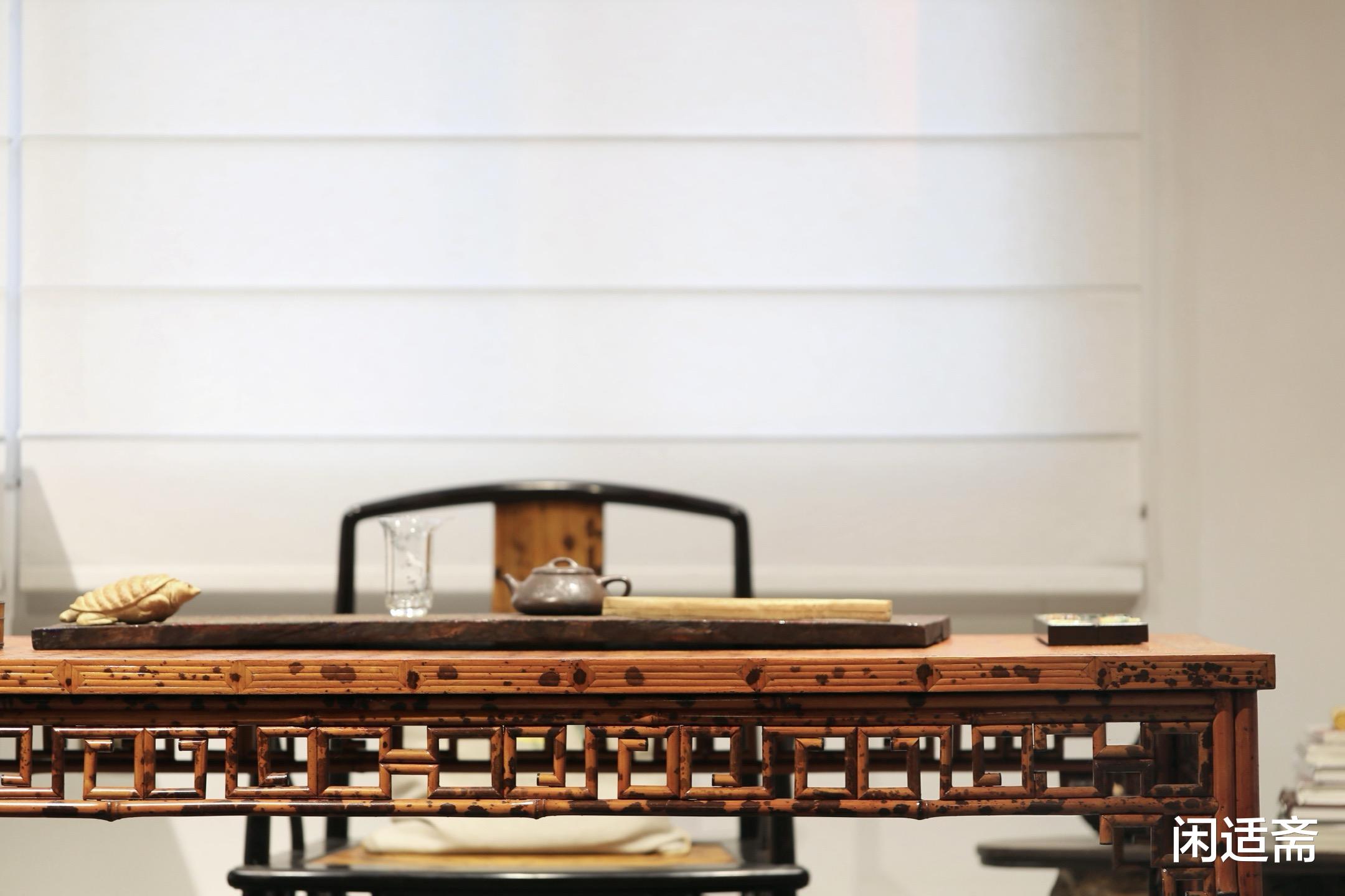 整体观之,这张湘妃竹画案古朴大方、制作精美,既有明式家具贴近自然的拙朴意趣,又透着文人器物的雅致格调。闲暇时倚案读书,指尖轻抚竹面的天然斑痕,耳畔似能听见竹风轻吟,浮躁心绪瞬间沉静。它不仅是供人创作的实用画案,更是承载湘妃竹文化、明式家具美学与文人雅趣的精巧雅器,让中式文房的清雅风骨,在笔墨书香中代代相传。