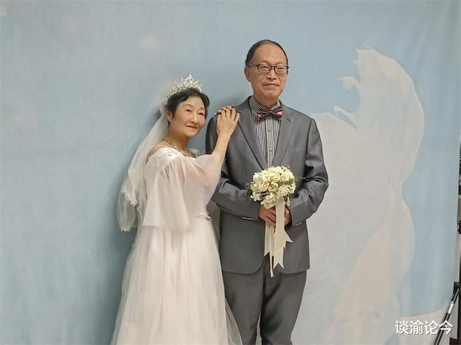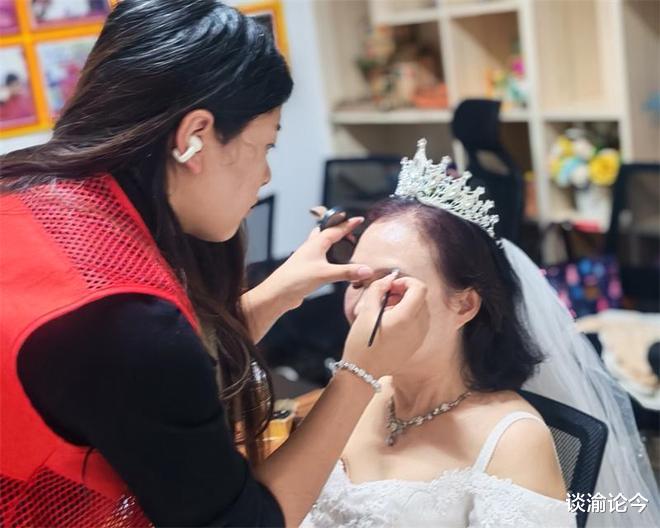 活动现场,由重庆市摄影行业协会公益委员会组建的专业团队早已忙碌开来:精心挑选的婚纱礼服挂满衣架,化妆台上前程似锦、腮红、口红等用品摆放整齐,摄影设备调试完毕,只为给每一对中老年夫妻呈现最佳状态。“年轻时结婚,就领了个红本本,连张合影都没好好拍过。”今年80岁的马阿姨坐在化妆镜前,看着镜中穿上婚纱的自己,眼眶微微泛红,“现在社区联合这么多单位给我们免费拍婚纱照,真是圆了我这辈子的梦!” 一旁的老伴罗叔叔穿着笔挺的西装,笑着帮马阿姨整理好头纱,摄影师迅速按下快门,将这一温馨瞬间定格。现场类似的场景不断上演,有的夫妻手挽手走过临时搭建的“幸福通道”,有的在背景板前模仿年轻时的青涩模样,欢声笑语中,幸福的氛围感染着在场每一个人。