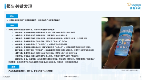 易观分析最新发布的《鸿蒙应用生态市场发展报告2025》给出了答案。这份报告不仅梳理了鸿蒙生态的整体发展态势,更聚焦挖掘出十大高潜力赛道,为产业资本和开发者指明了方向。
